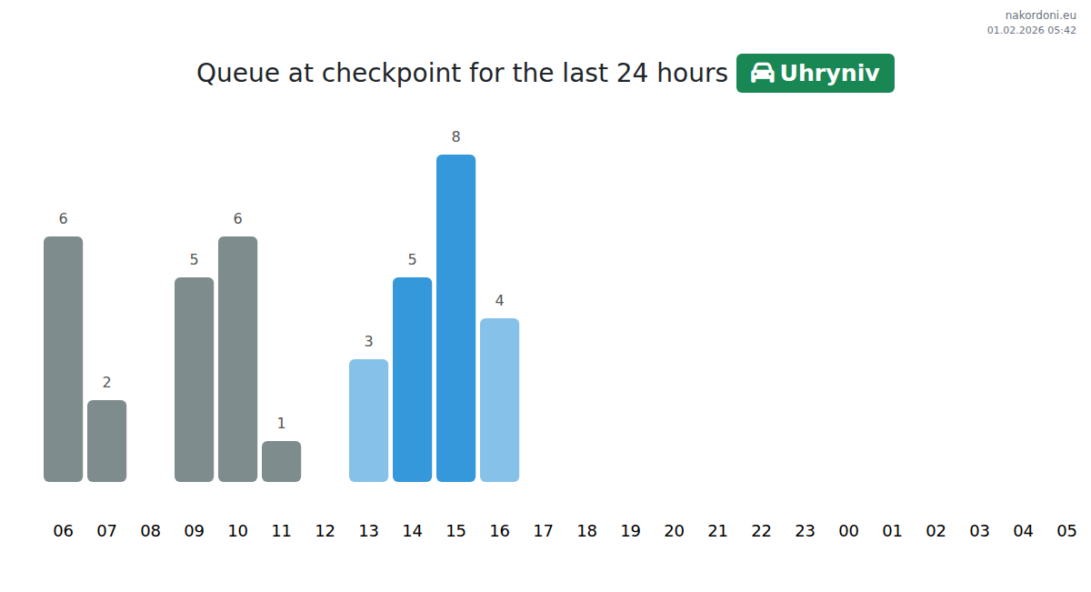 Plan your trips in advance using up-to-date border queue information at the Uhryniv - passenger car checkpoint to make your crossing fast and convenient. Pay special attention to these hours to avoid peak times and reduce waiting times.