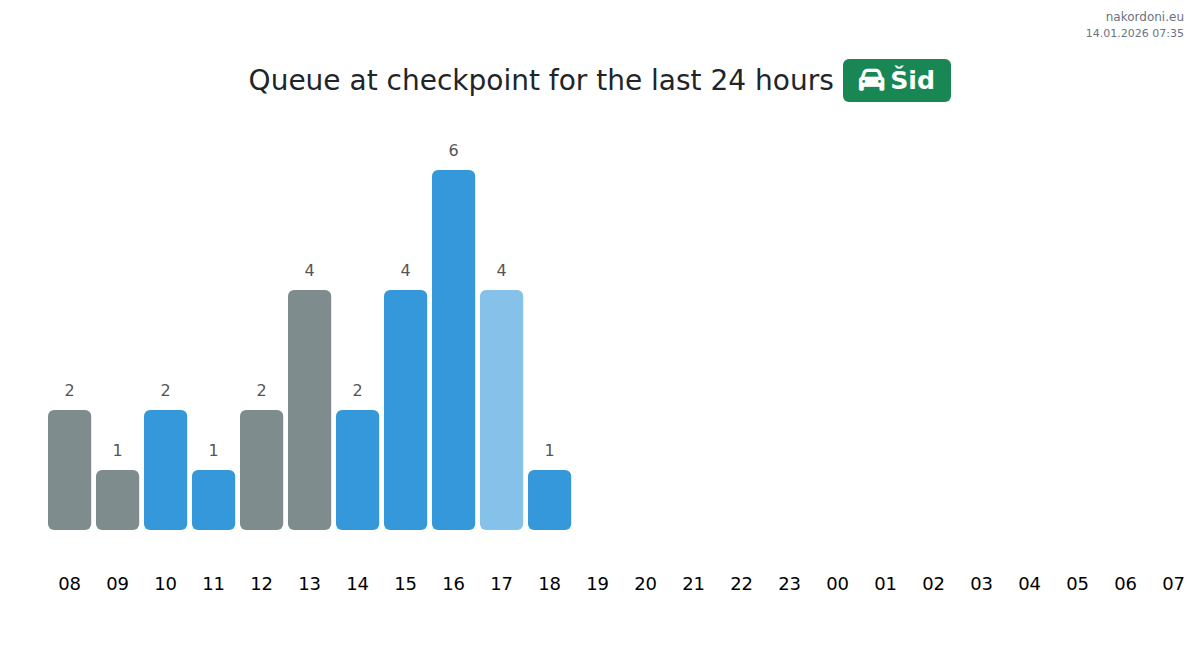 Plan your trips in advance using up-to-date border queue information at the Šid - passenger car checkpoint to make your crossing fast and convenient. Pay special attention to these hours to avoid peak times and reduce waiting times.