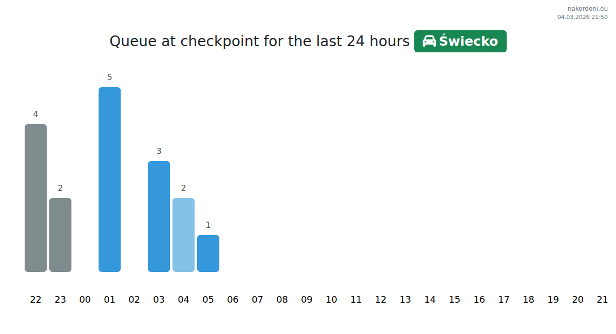 Plan your trips in advance using up-to-date border queue information at the Świecko - passenger car checkpoint to make your crossing fast and convenient. Pay special attention to these hours to avoid peak times and reduce waiting times.