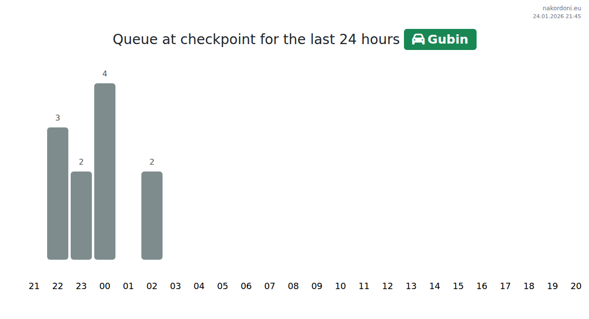 To avoid long queues at the Gubin - passenger car checkpoint, it is recommended to plan your border crossing during the least busy hours. According to the data from the past day, the lowest number of vehicles was observed between 15:00 and 21:00 hours. This is the ideal time to cross the border, saving time and avoiding delays.