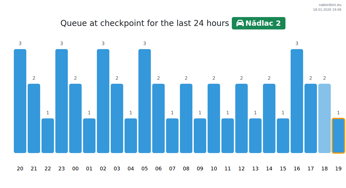 Border Queue Analysis at the Nădlac 2 - passenger car checkpoint for Yesterday