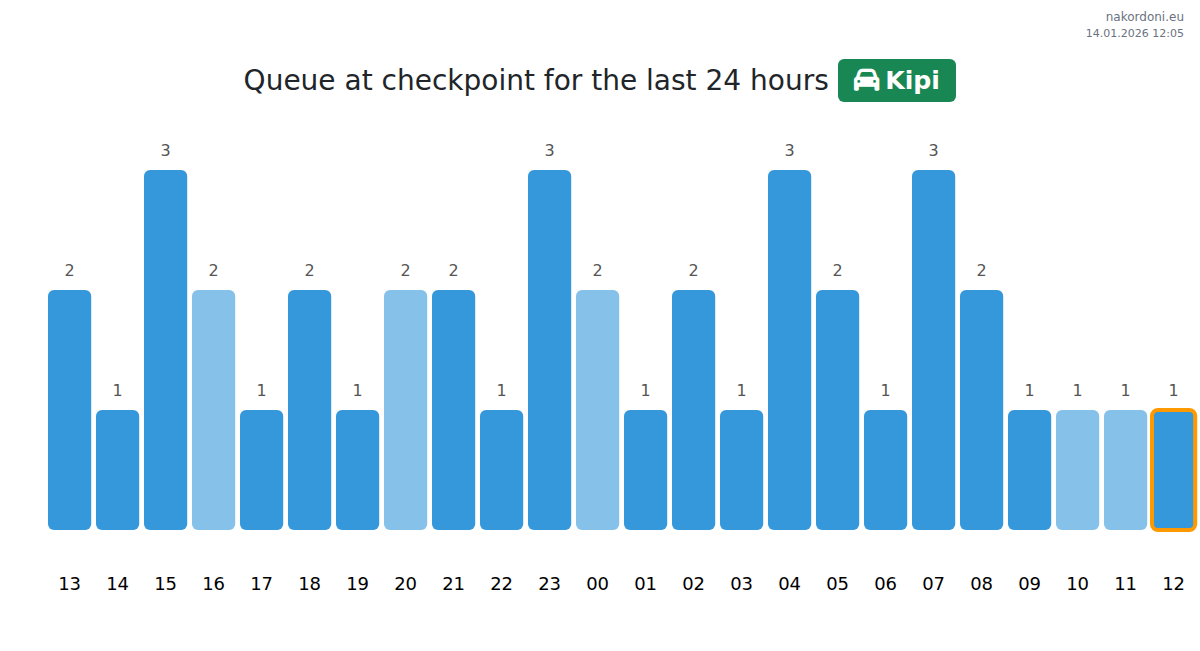 Plan your trips in advance using up-to-date border queue information at the Kipi - passenger car checkpoint to make your crossing fast and convenient. Pay special attention to these hours to avoid peak times and reduce waiting times.