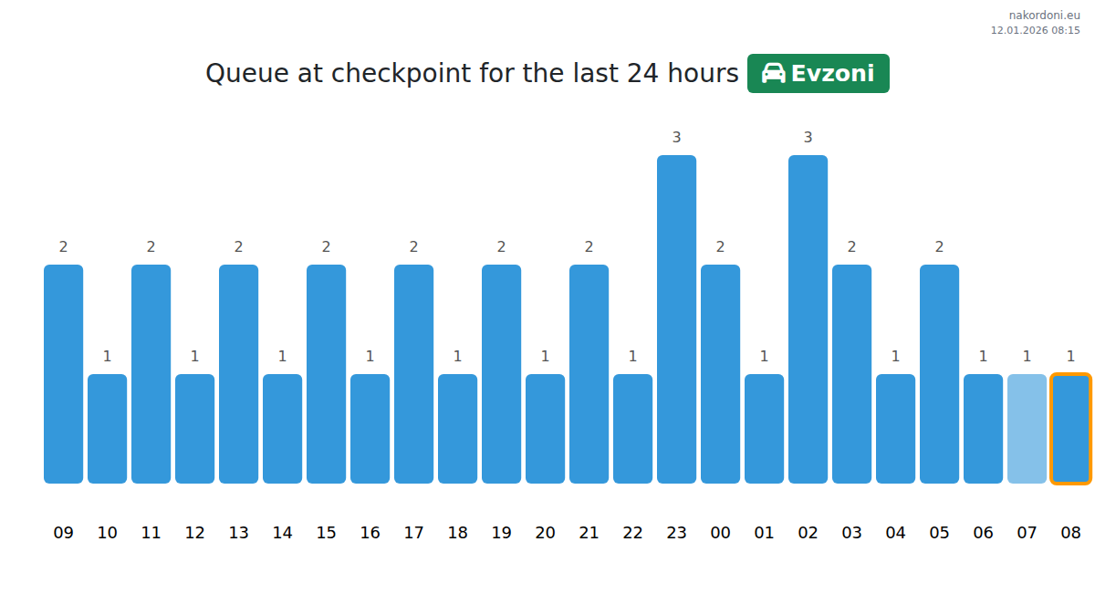 To avoid long queues at the Evzoni - passenger car checkpoint, it is recommended to plan your border crossing during the least busy hours. According to the data from the past day, the lowest number of vehicles was observed between 1:00 and 4:00 hours. This is the ideal time to cross the border, saving time and avoiding delays.
