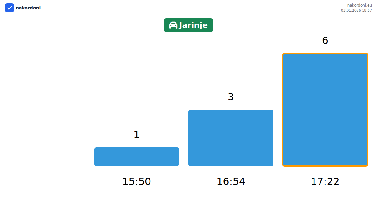 Plan your trips in advance using up-to-date border queue information at the Jarinje - passenger car checkpoint to make your crossing fast and convenient. Pay special attention to these hours to avoid peak times and reduce waiting times.