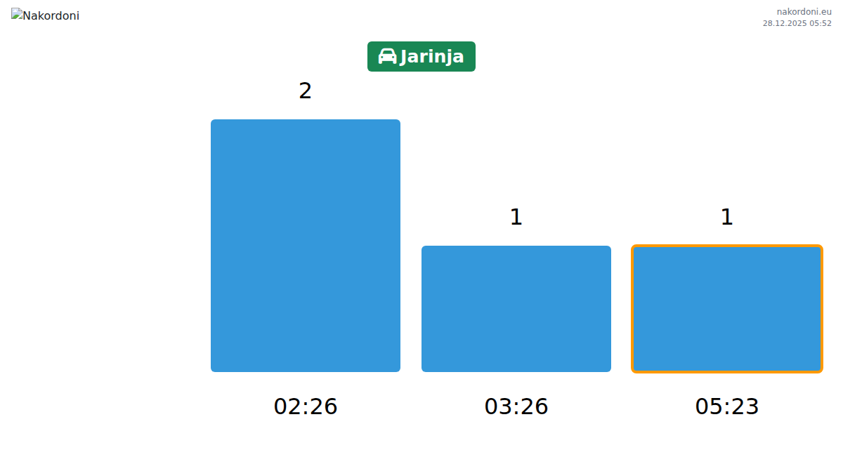 Plan your trips in advance using up-to-date border queue information at the Jarinja - passenger car checkpoint to make your crossing fast and convenient. Pay special attention to these hours to avoid peak times and reduce waiting times.