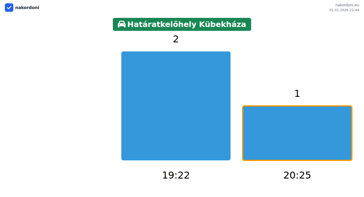 Plan your trips in advance using up-to-date border queue information at the Határatkelőhely Kübekháza - passenger car checkpoint to make your crossing fast and convenient. Pay special attention to these hours to avoid peak times and reduce waiting times.