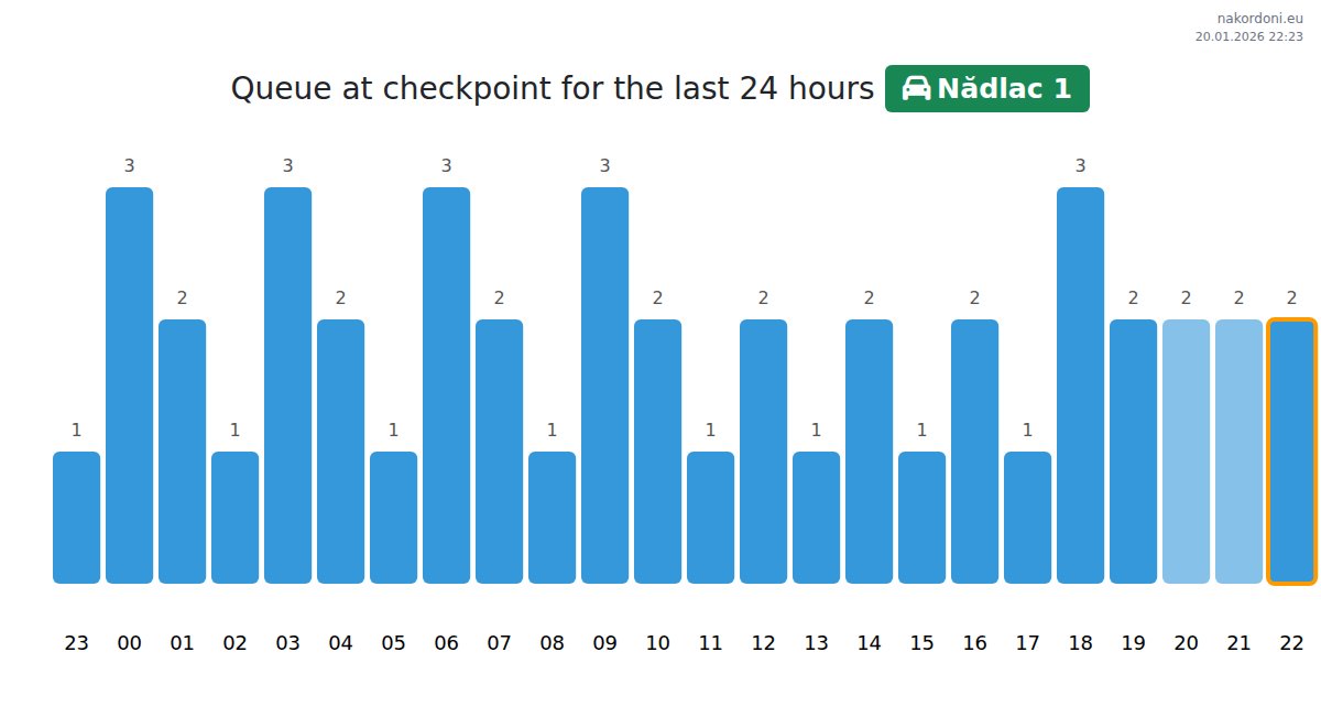 Border Queue Analysis at the Nădlac 1 - passenger car checkpoint for Yesterday