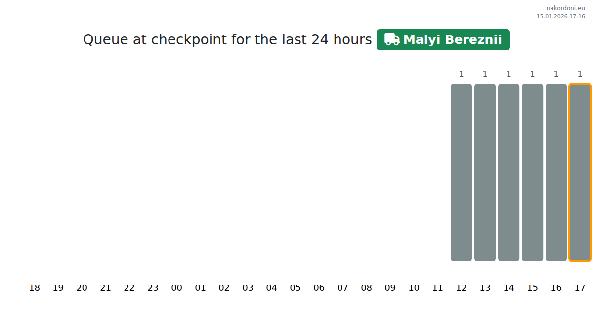 Plan your trips in advance using up-to-date border queue information at the Malyi Bereznii - cargo transport (up to 3.5 tons) checkpoint to make your crossing fast and convenient. Pay special attention to these hours to avoid peak times and reduce waiting times.