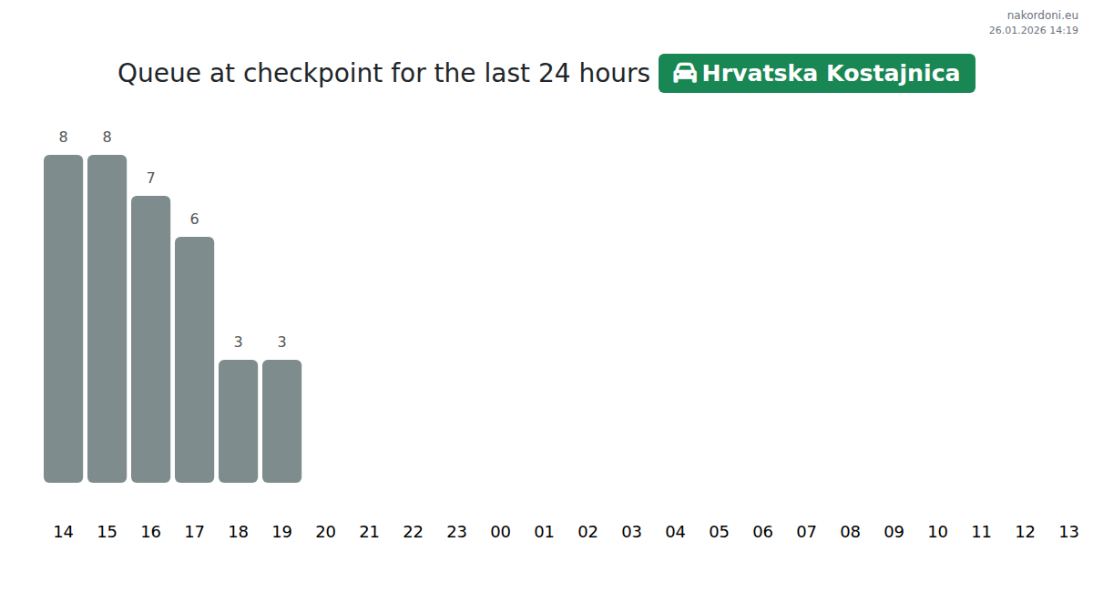 Border Queue Analysis at the Hrvatska Kostajnica - passenger car checkpoint for Yesterday