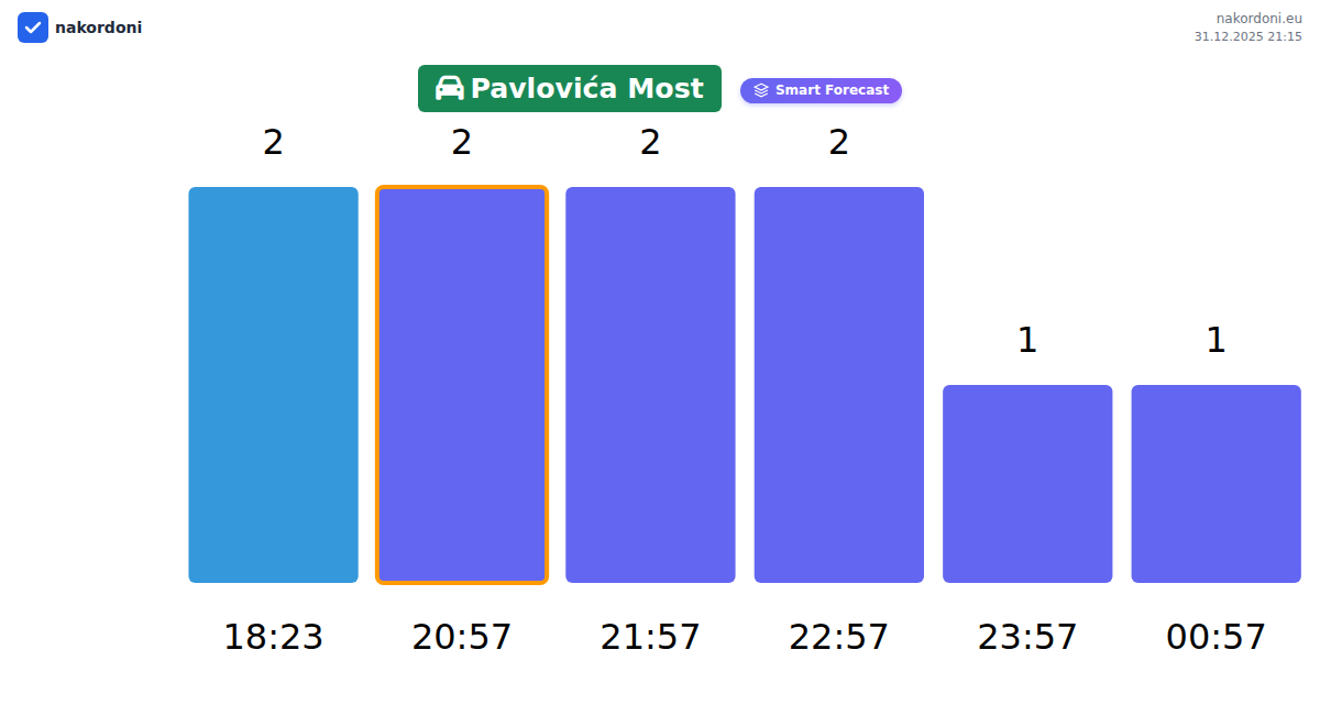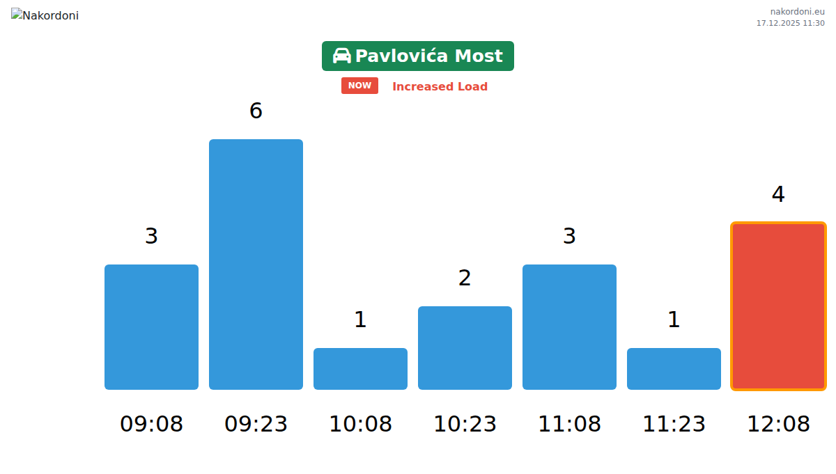 Plan your trips in advance using up-to-date border queue information at the Pavlovića Most - passenger car checkpoint to make your crossing fast and convenient. Pay special attention to these hours to avoid peak times and reduce waiting times.