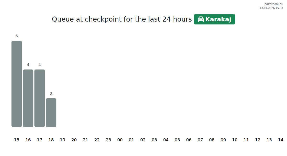Plan your trips in advance using up-to-date border queue information at the Karakaj - passenger car checkpoint to make your crossing fast and convenient. Pay special attention to these hours to avoid peak times and reduce waiting times.