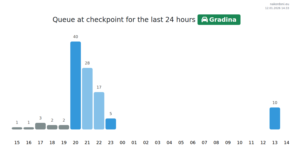 Plan your trips in advance using up-to-date border queue information at the Gradina - passenger car checkpoint to make your crossing fast and convenient. Pay special attention to these hours to avoid peak times and reduce waiting times.