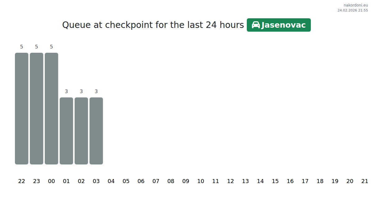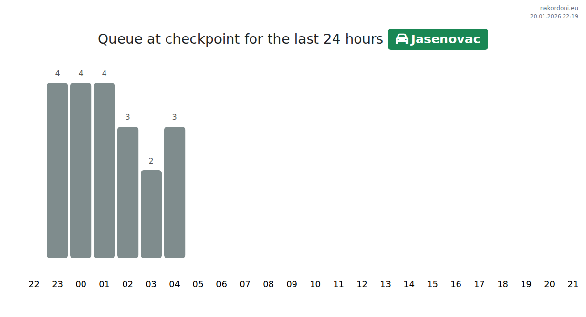 Plan your trips in advance using up-to-date border queue information at the Jasenovac - passenger car checkpoint to make your crossing fast and convenient. Pay special attention to these hours to avoid peak times and reduce waiting times.