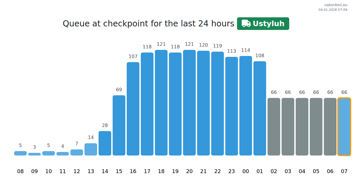 Plan your trips in advance using up-to-date border queue information at the Ustyluh - cargo transport checkpoint to make your crossing fast and convenient. Pay special attention to these hours to avoid peak times and reduce waiting times.