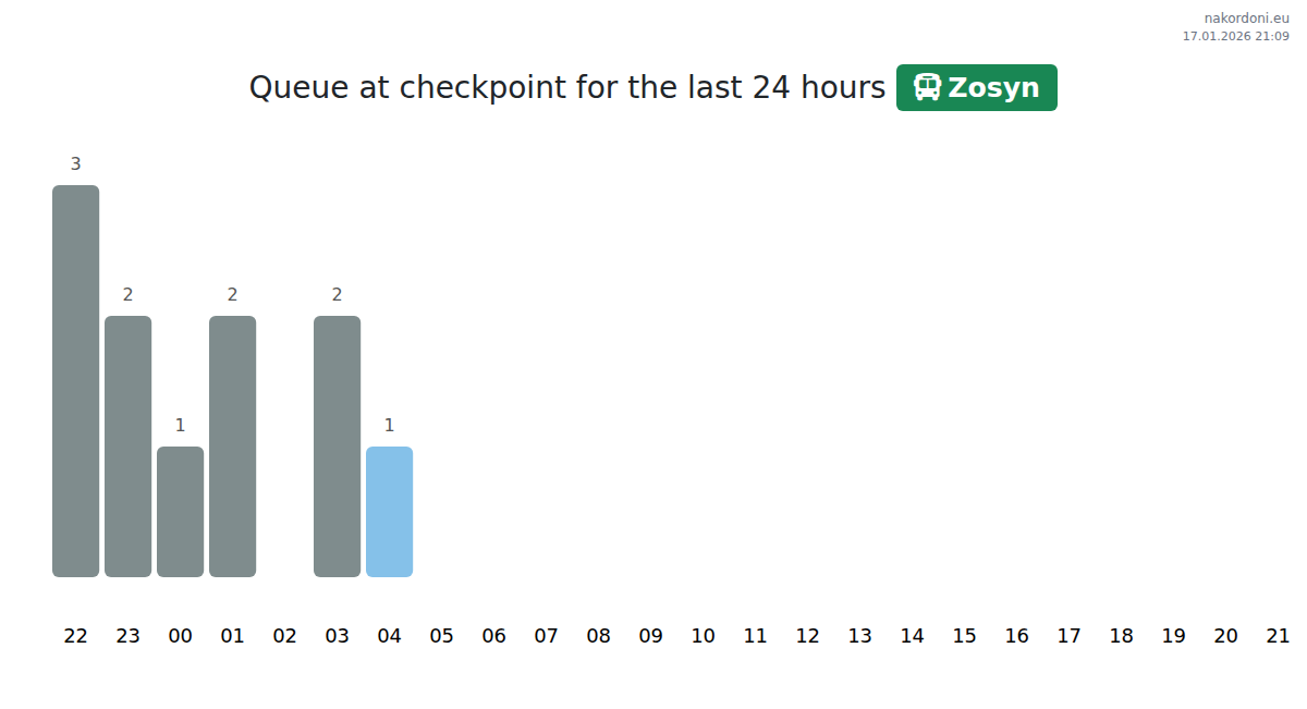 To avoid long queues at the Zosyn - bus checkpoint, it is recommended to plan your border crossing during the least busy hours. According to the data from the past day, the lowest number of vehicles was observed between 2:00 and 5:00 hours. This is the ideal time to cross the border, saving time and avoiding delays.