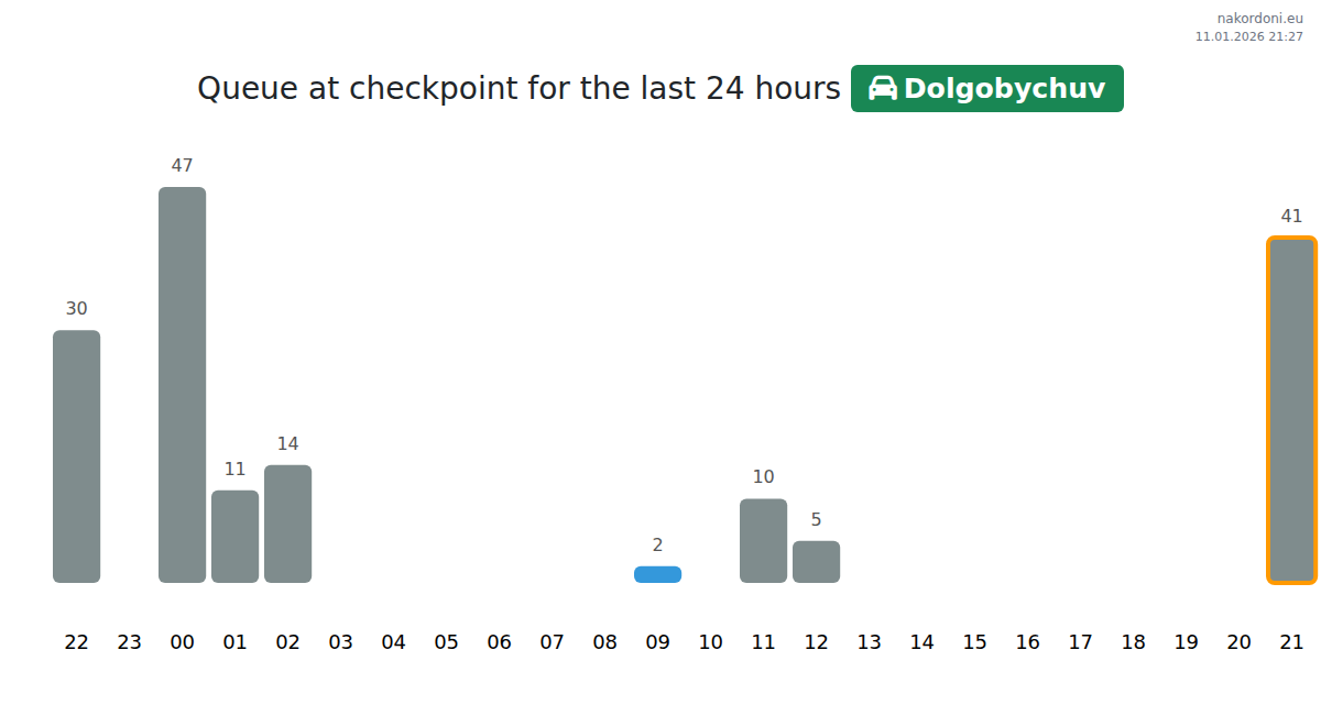 Plan your trips in advance using up-to-date border queue information at the Dolgobychuv - passenger car TaxFREE (Red line) checkpoint to make your crossing fast and convenient. Pay special attention to these hours to avoid peak times and reduce waiting times.