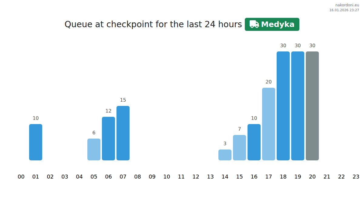 Plan your trips in advance using up-to-date border queue information at the Medyka - cargo transport checkpoint to make your crossing fast and convenient. Pay special attention to these hours to avoid peak times and reduce waiting times.