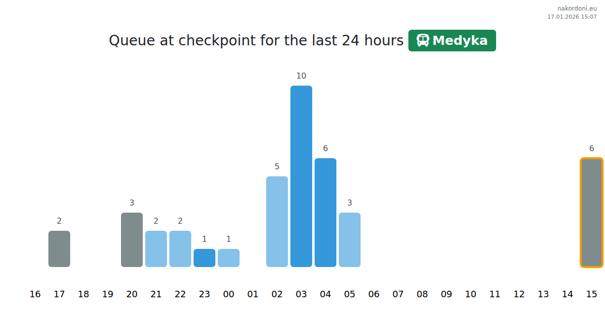 Plan your trips in advance using up-to-date border queue information at the Medyka - bus checkpoint to make your crossing fast and convenient. Pay special attention to these hours to avoid peak times and reduce waiting times.