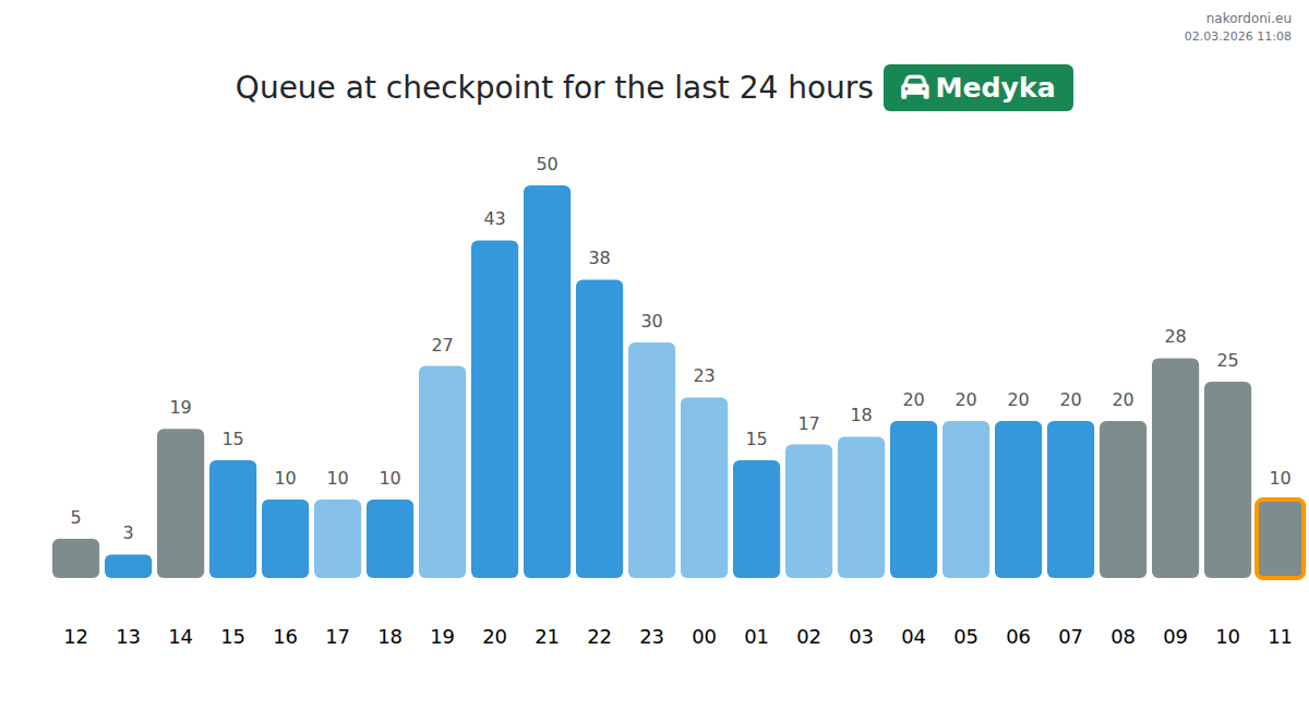 Plan your trips in advance using up-to-date border queue information at the Medyka - passenger car checkpoint to make your crossing fast and convenient. Pay special attention to these hours to avoid peak times and reduce waiting times.
