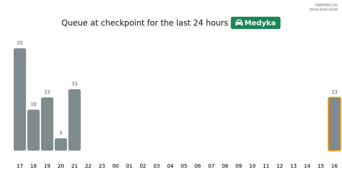 Plan your trips in advance using up-to-date border queue information at the Medyka - passenger car TaxFREE (Red line) checkpoint to make your crossing fast and convenient. Pay special attention to these hours to avoid peak times and reduce waiting times.