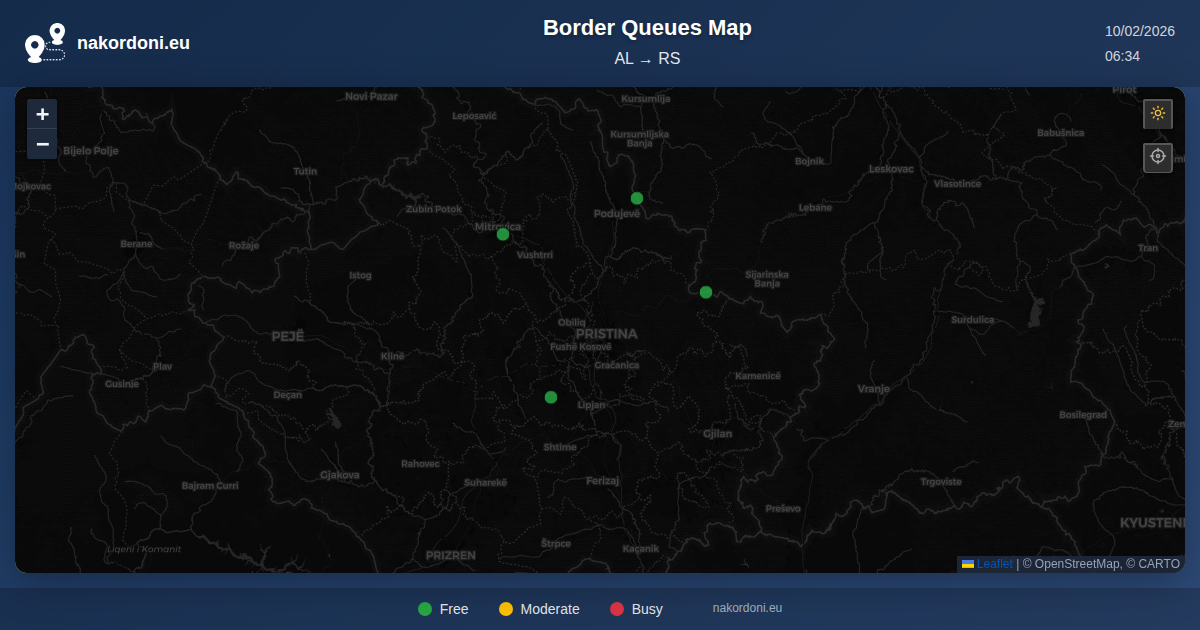 Interactive Albania — Serbia Border Map with Real-Time Queues, Forecast, and Crossing Status