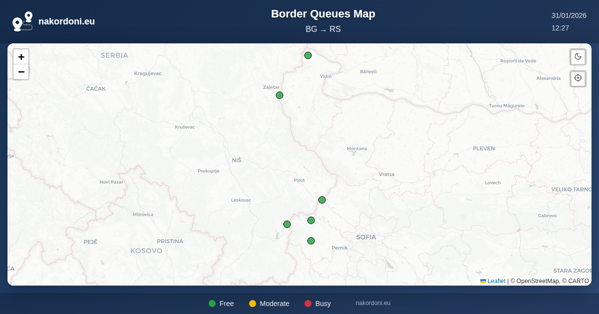 Interactive Bulgaria — Serbia Border Map with Real-Time Queues, Forecast, and Crossing Status