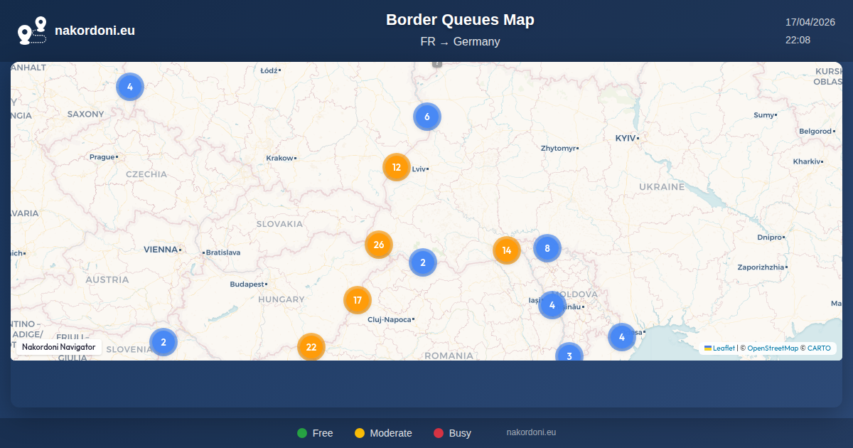 Interactive FR — Germany Border Map with Real-Time Queues, Forecast, and Crossing Status