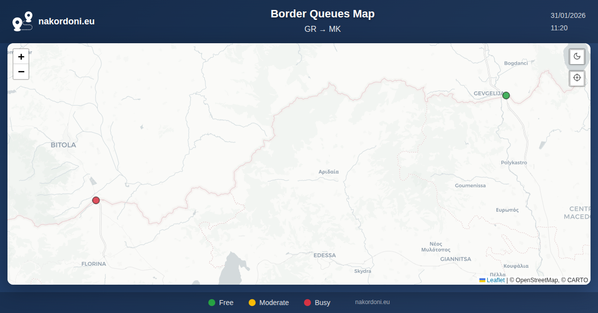 Interactive Greece — North Macedonia Border Map with Real-Time Queues, Forecast, and Crossing Status