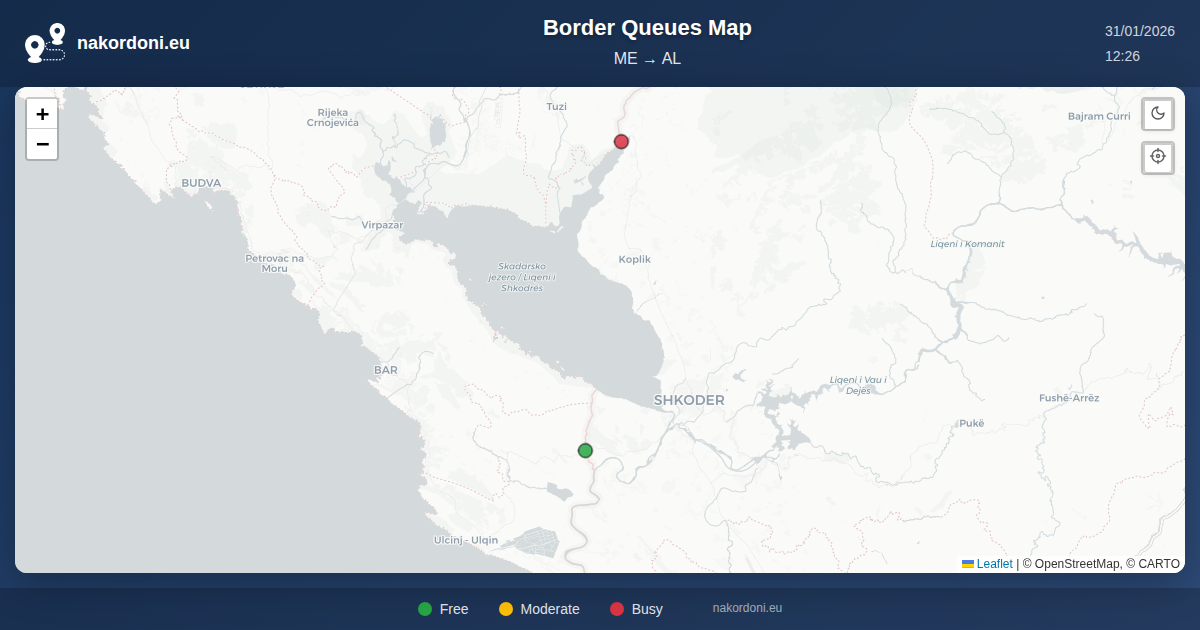 Interactive Montenegro — Albania Border Map with Real-Time Queues, Forecast, and Crossing Status