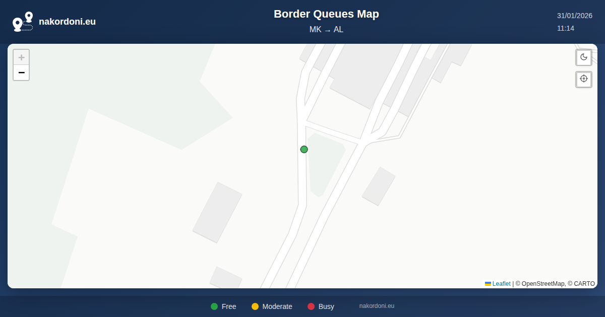 Interactive North Macedonia — Albania Border Map with Real-Time Queues, Forecast, and Crossing Status