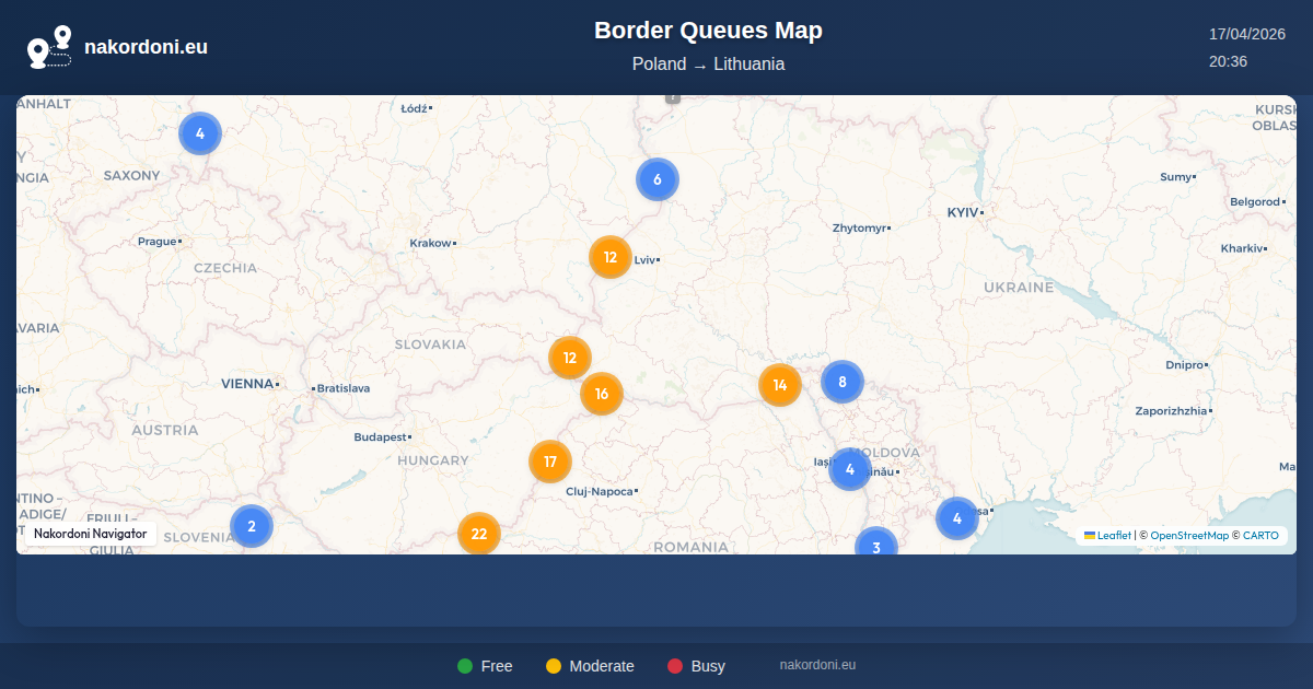 Interactive Poland — Lithuania Border Map with Real-Time Queues, Forecast, and Crossing Status