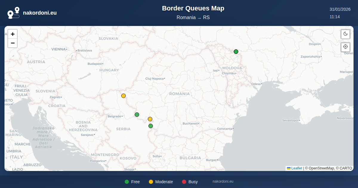 Interactive Romania — Serbia Border Map with Real-Time Queues, Forecast, and Crossing Status