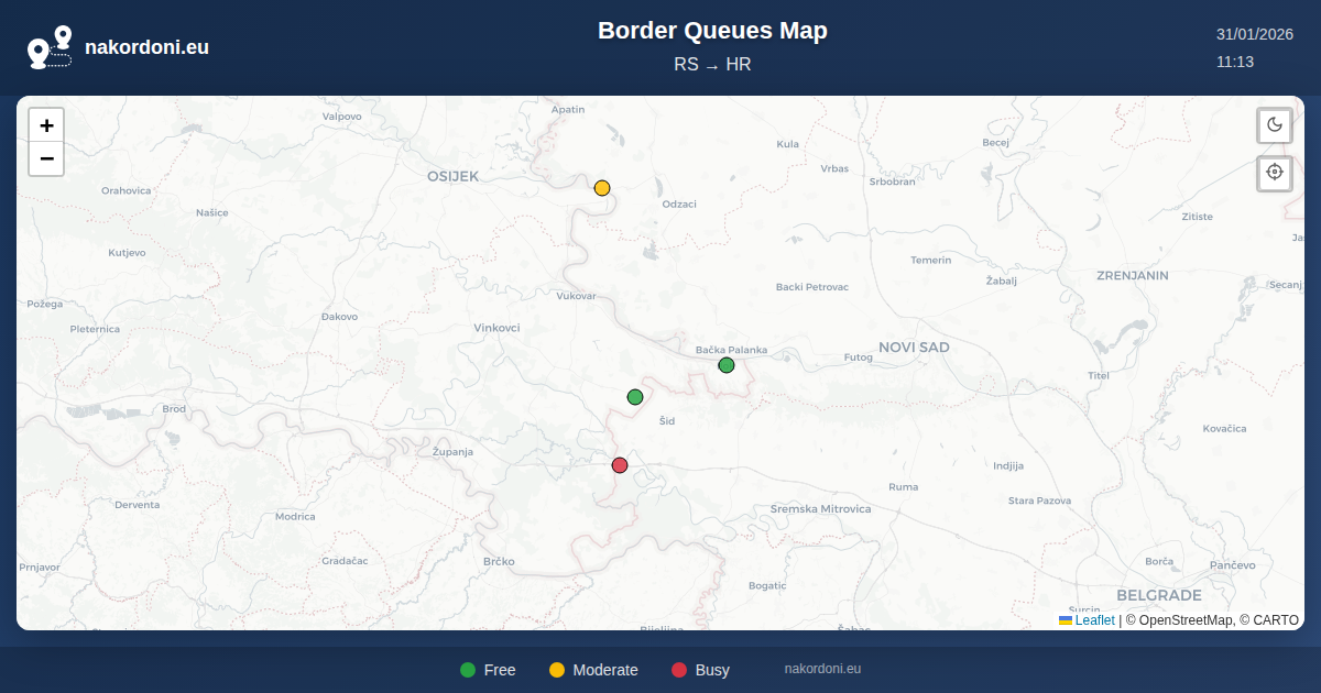 Interactive Serbia — Croatia Border Map with Real-Time Queues, Forecast, and Crossing Status