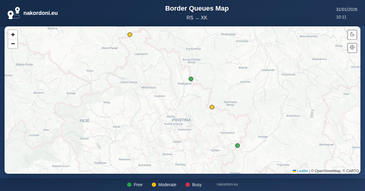 Interactive Serbia — Kosovo Border Map with Real-Time Queues, Forecast, and Crossing Status