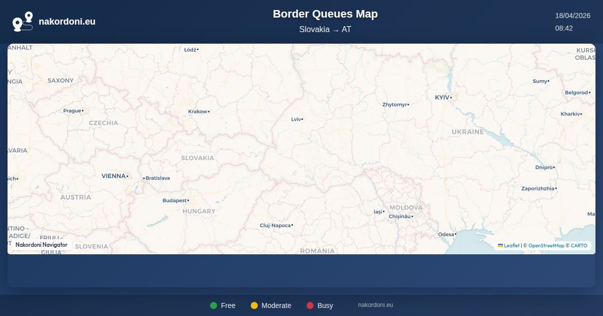 Interactive Slovakia — AT Border Map with Real-Time Queues, Forecast, and Crossing Status