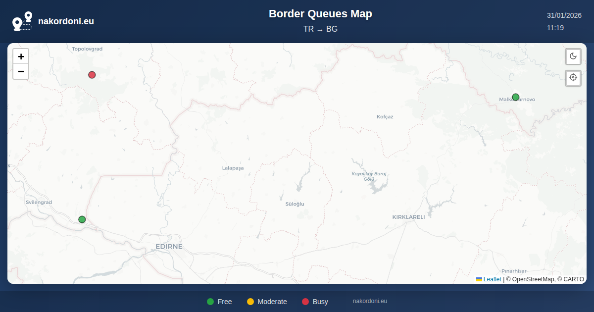 Interactive Turkey — Bulgaria Border Map with Real-Time Queues, Forecast, and Crossing Status