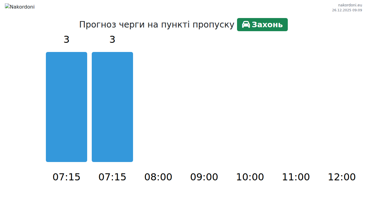 За період 25.12.2025 з 00:00 по 23:59 на кордоні на пункті пропуску Захонь - авто були зафіксовані наступні ключові моменти: