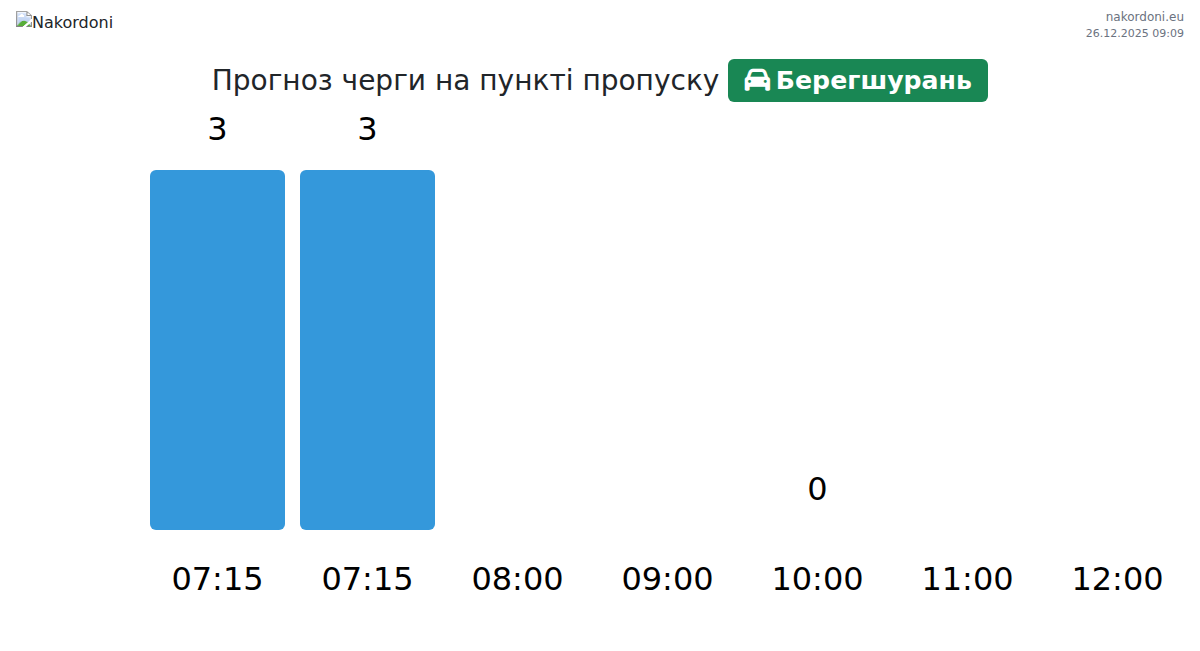 За період 25.12.2025 з 00:00 по 23:59 на кордоні на пункті пропуску Берегшурань - авто були зафіксовані наступні ключові моменти: