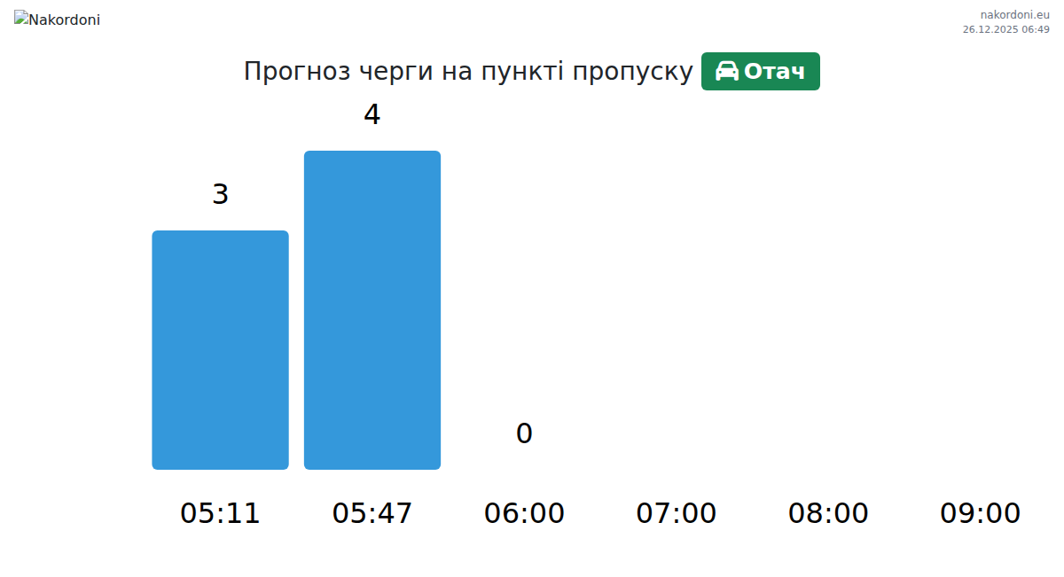 За період 25.12.2025 з 00:00 по 23:59 на кордоні на пункті пропуску Отач - легковий автомобіль були зафіксовані наступні ключові моменти:
