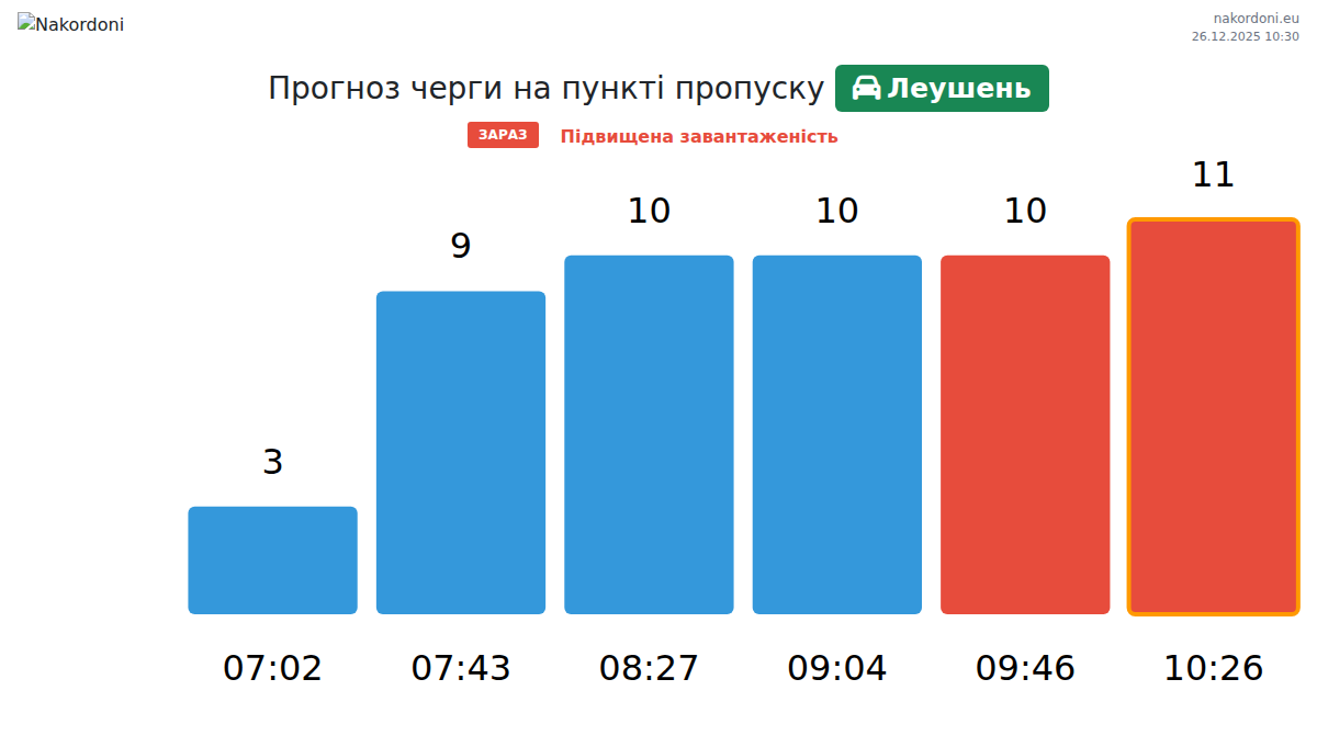За період 25.12.2025 з 00:00 по 23:59 на кордоні на пункті пропуску Леушень - авто були зафіксовані наступні ключові моменти: