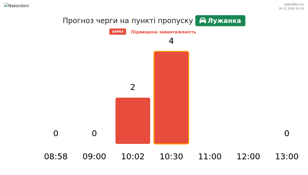 За період 25.12.2025 з 00:00 по 23:59 на кордоні на пункті пропуску Лужанка - легковий автомобіль були зафіксовані наступні ключові моменти: