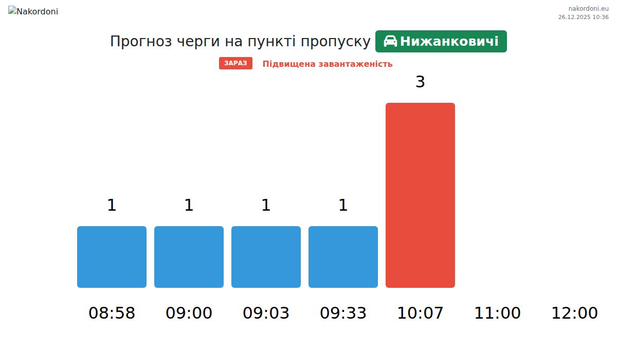 За період 25.12.2025 з 00:00 по 23:59 на кордоні на пункті пропуску Нижанковичі - легковий автомобіль були зафіксовані наступні ключові моменти: