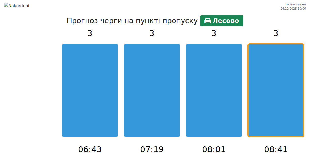 За період 25.12.2025 з 00:00 по 23:59 на кордоні на пункті пропуску Лесово - авто були зафіксовані наступні ключові моменти:
