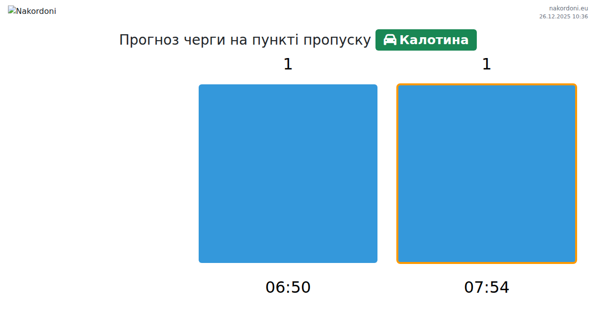 За період 25.12.2025 з 00:00 по 23:59 на кордоні на пункті пропуску Калотина - легковий автомобіль були зафіксовані наступні ключові моменти: