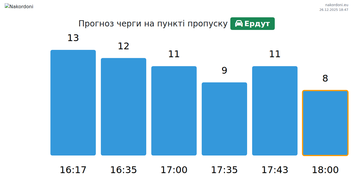 Плануйте свої поїздки заздалегідь, використовуючи актуальну інформацію про черги на кордоні на пункті пропуску Ердут - легковий автомобіль, щоб зробити ваш перетин швидким і зручним. Приділіть особливу увагу цим годинам, щоб уникнути пікового навантаження і зменшити час очікування.