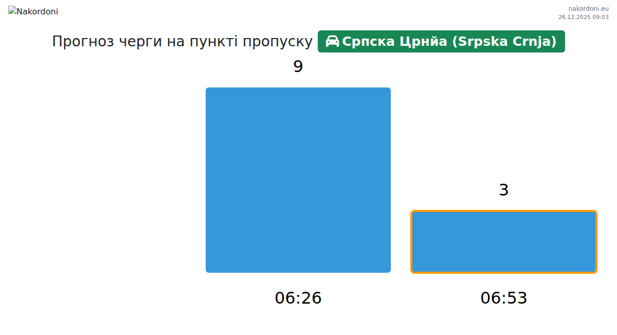 За період 25.12.2025 з 00:00 по 23:59 на кордоні на пункті пропуску Српска Црнйа (Srpska Crnja) - авто були зафіксовані наступні ключові моменти: