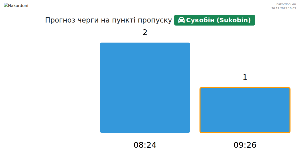 За період 25.12.2025 з 00:00 по 23:59 на кордоні на пункті пропуску Сукобін (Sukobin) - авто були зафіксовані наступні ключові моменти: