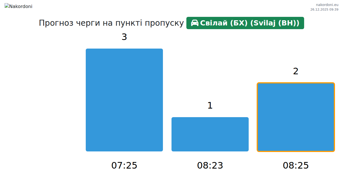 За період 25.12.2025 з 00:00 по 23:59 на кордоні на пункті пропуску Свілай (БХ) (Svilaj (BH)) - легковий автомобіль були зафіксовані наступні ключові моменти: