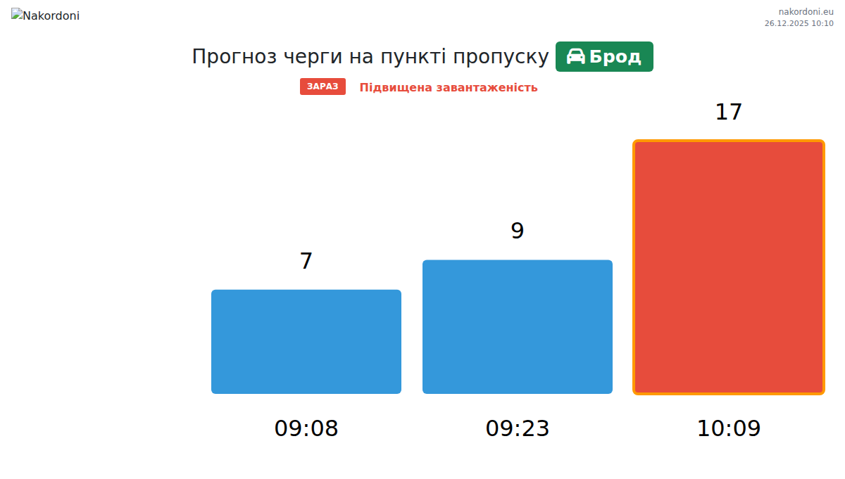 За період 25.12.2025 з 00:00 по 23:59 на кордоні на пункті пропуску Брод - авто були зафіксовані наступні ключові моменти: