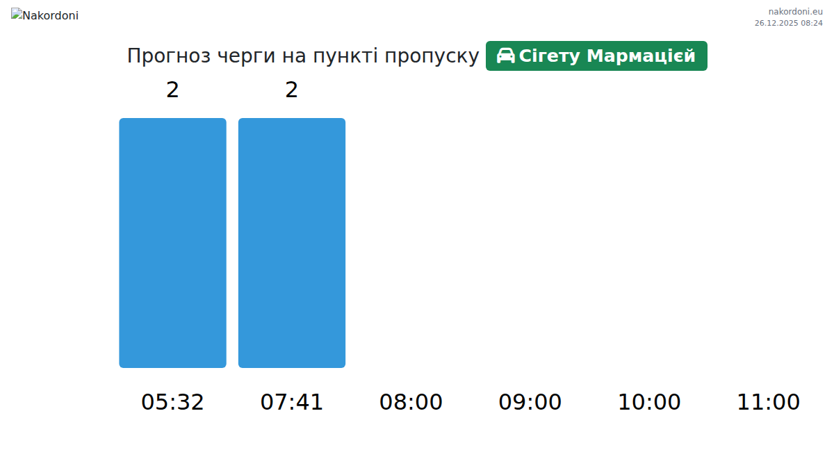 За період 25.12.2025 з 00:00 по 23:59 на кордоні на пункті пропуску Сігету Мармацієй - легковий автомобіль були зафіксовані наступні ключові моменти: